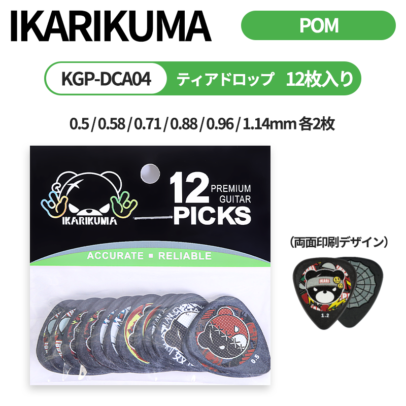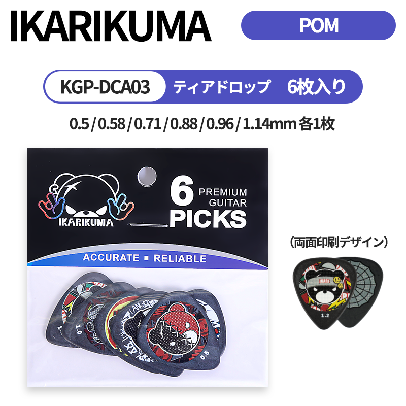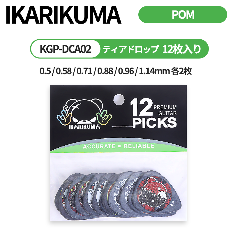 • Ikarikuma 怒りクマ dcaシリーズ pom素材 ティアドロップ型ギターピック 6枚入り/12枚入り