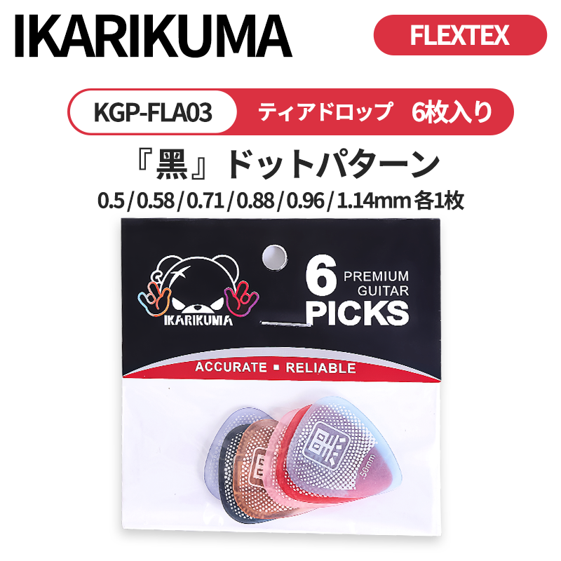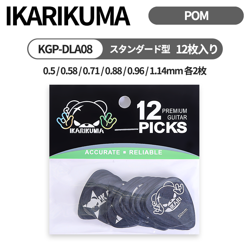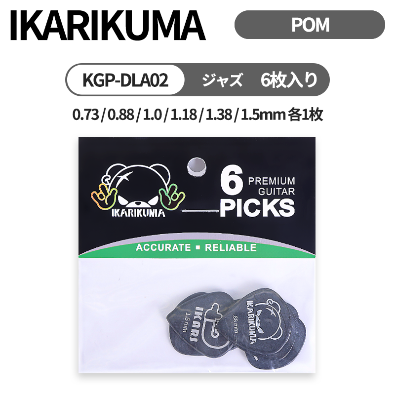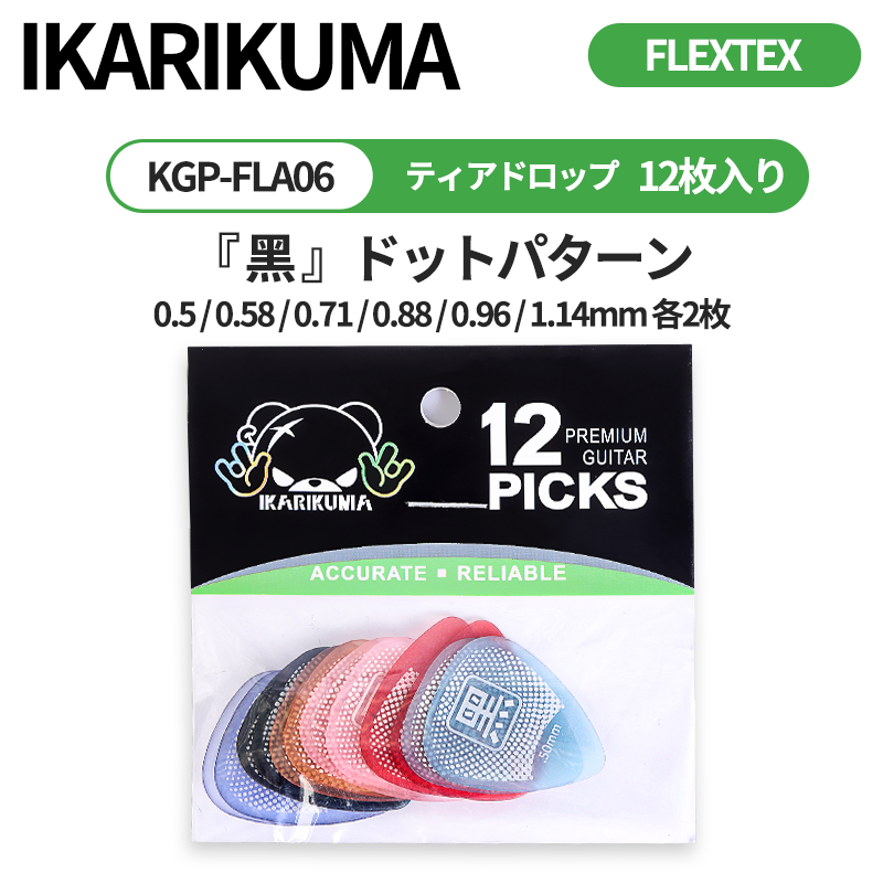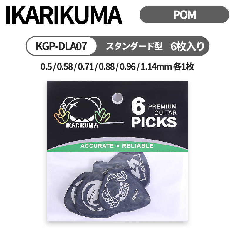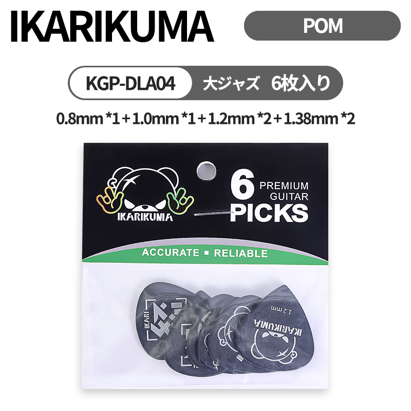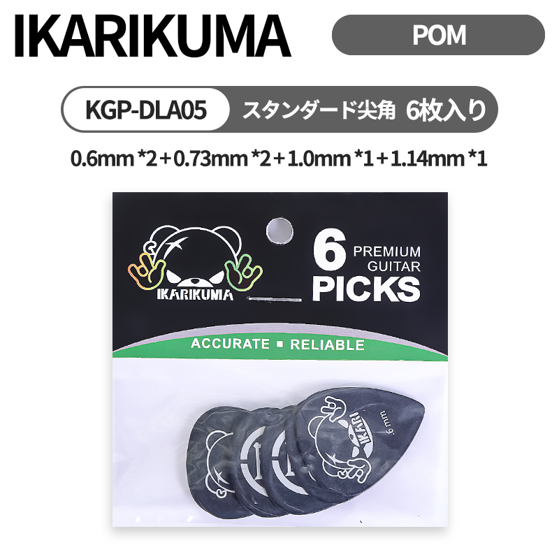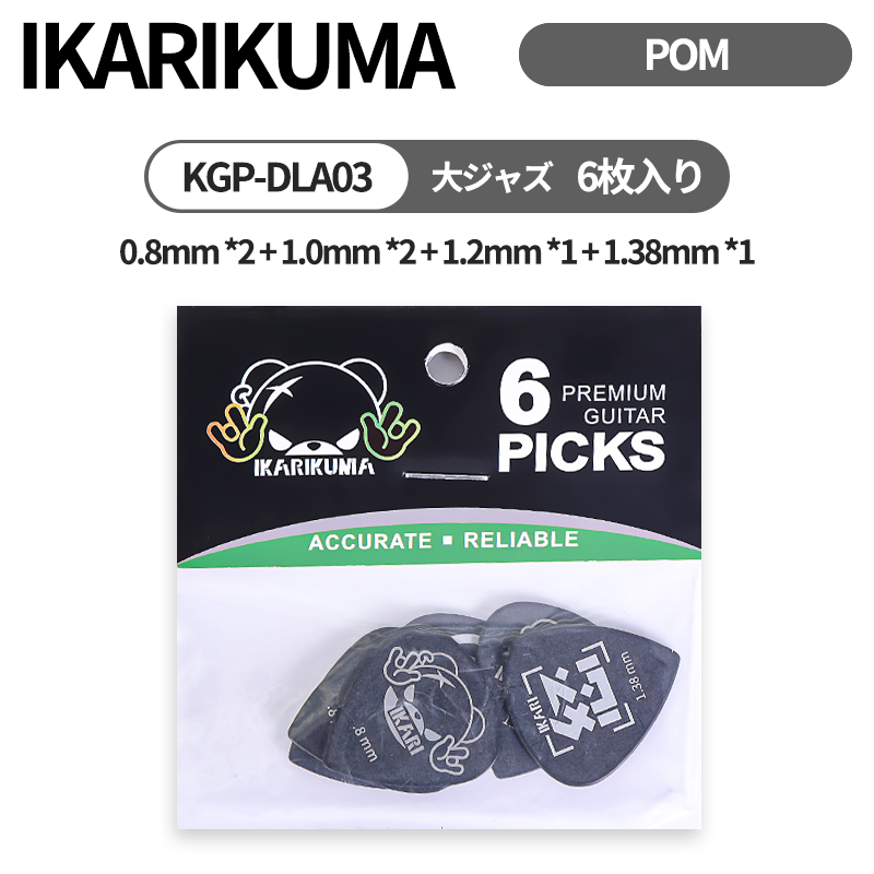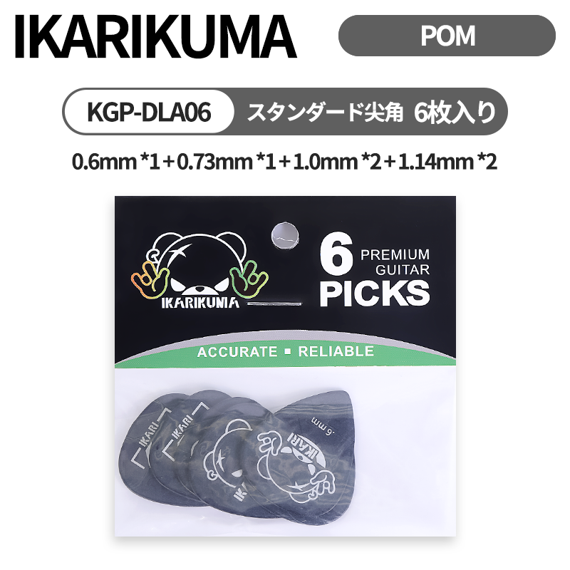 • Ikarikuma 怒りクマ dlaシリーズ pom素材 ティアドロップ型ギターピック 6枚入り/12枚入り