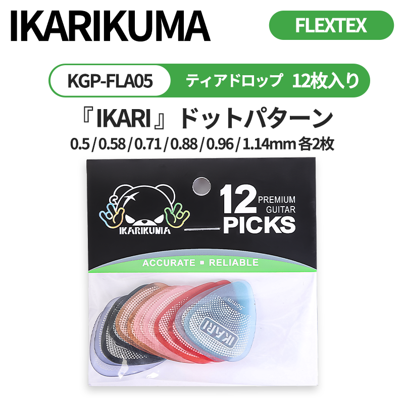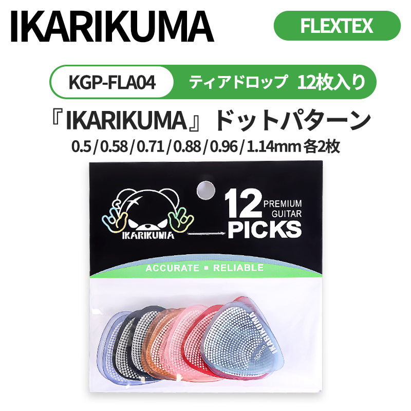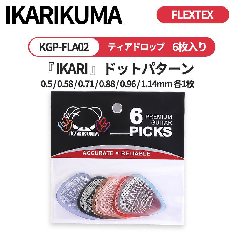 • Ikarikuma 怒りクマ flextex flaシリーズ マカロン風カラー ティアドロップ型ギターピック 6枚入り/12枚入り