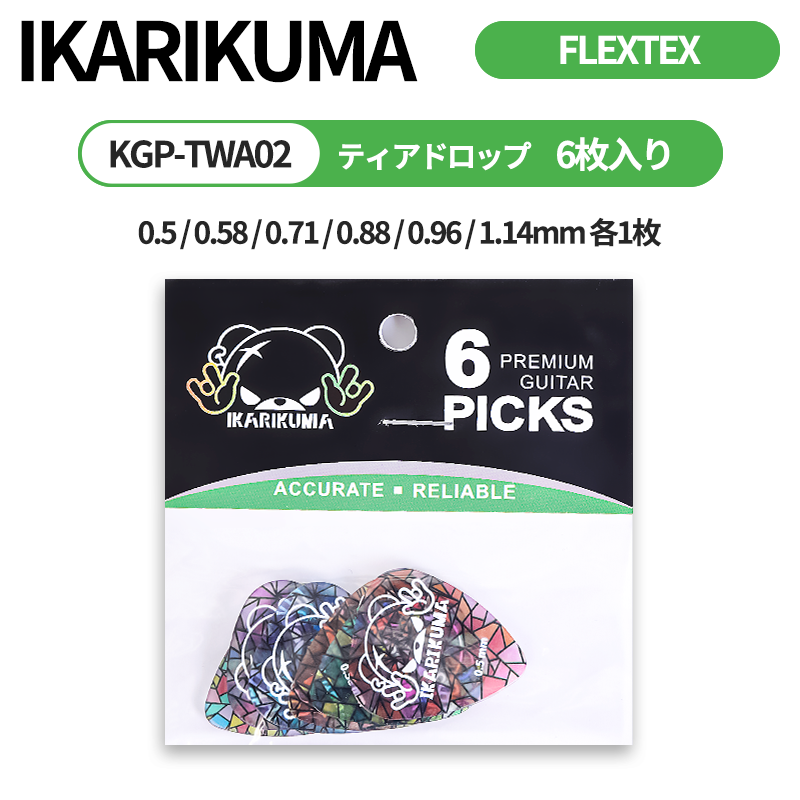 • Ikarikuma 怒りクマ flextex twaシリーズ ステンドグラス風 ティアドロップ型ギターピック 6枚入り