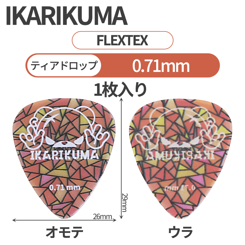 Ikarikuma 怒りクマ flextex ステンドグラス風 ティアドロップギターピック