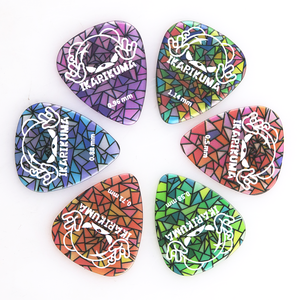 Ikarikuma 怒りクマ flextex twaシリーズ ステンドグラス風 ティアドロップ型ギターピック 6枚入り