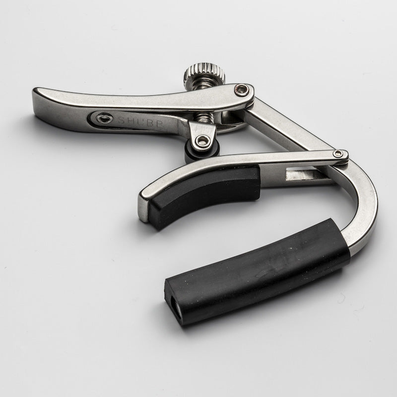 多くの人がオリジナルのShubbカポタストは改良の余地がないと考えていました。しかし1998年に私たちはShubbデラックスを発表し、素材、デザイン、人間工学、幾何学的構造の全てにおいて進化を遂げました。そのデザインは発売以来変わっていません。ソリッドステンレススチール製で摩耗や傷に強く、何年経っても現在と同様の美しさを保ちます。