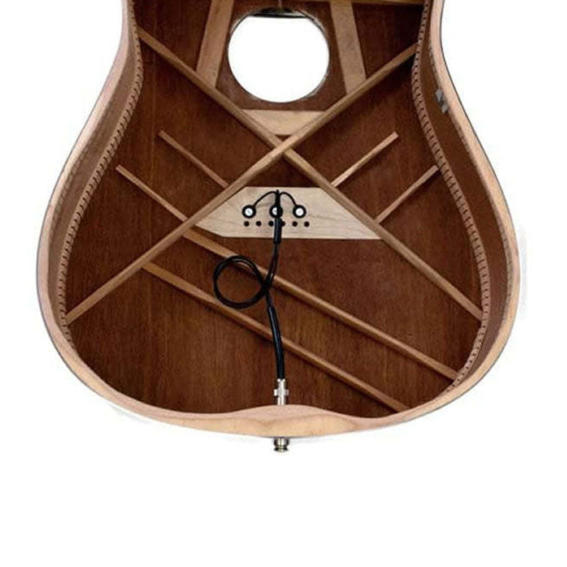 - ブリッジプレート上の最適な位置に設置され、全ての弦の音をバランス良く拾い、ハーシュやパーカッシブな音にならず、サウンドボードの特性を忠実に増幅します。