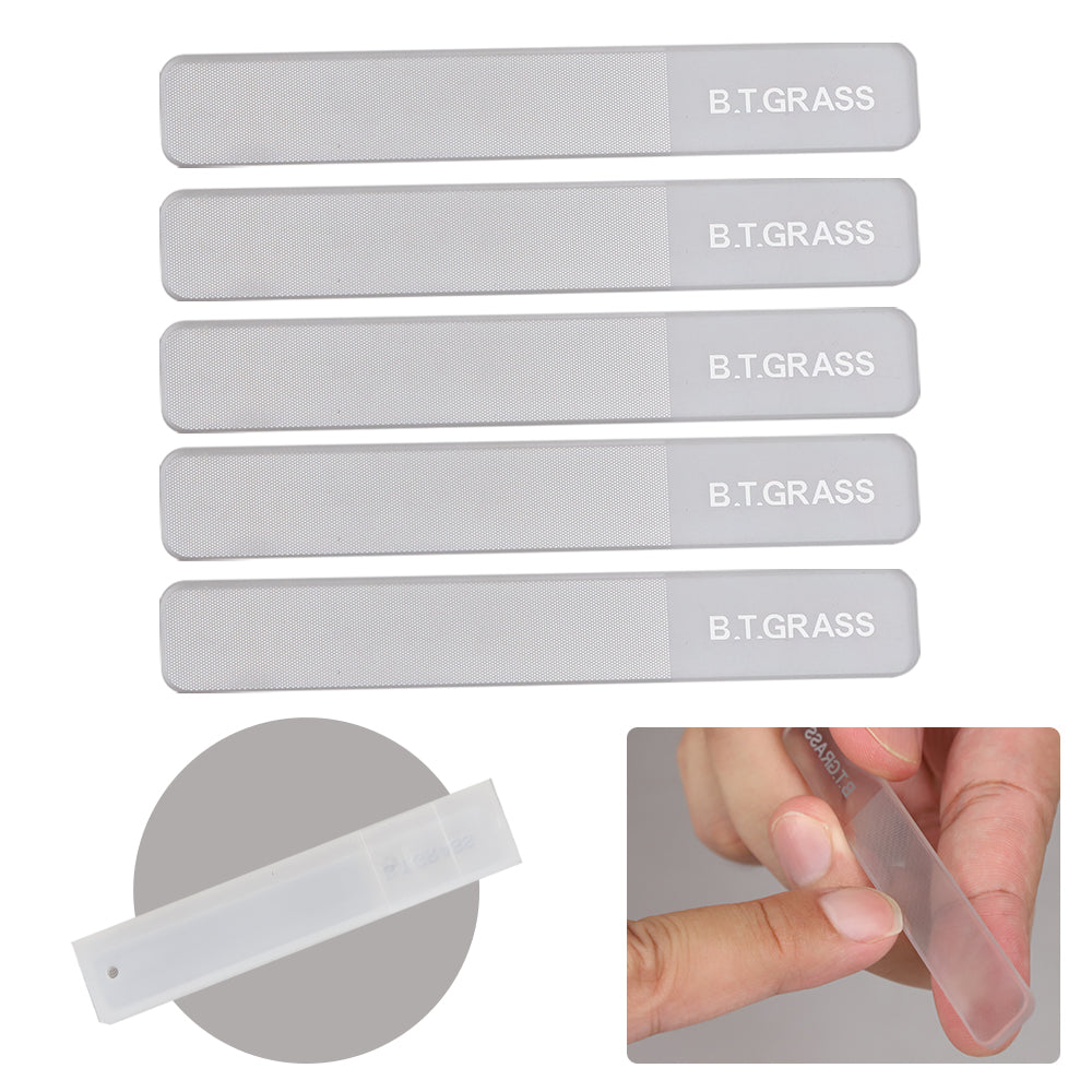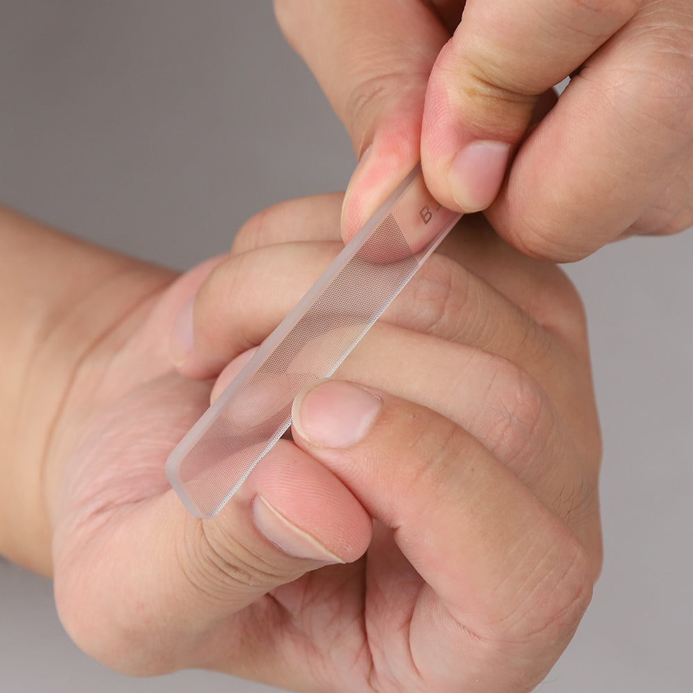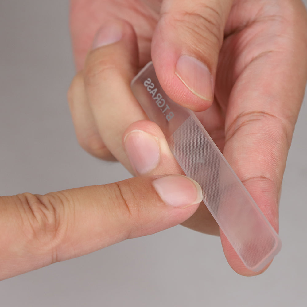 高密度ガラスの表面で、爪を傷めずに優しく整えます。ささくれを防ぎ、快適な弾き心地へ。