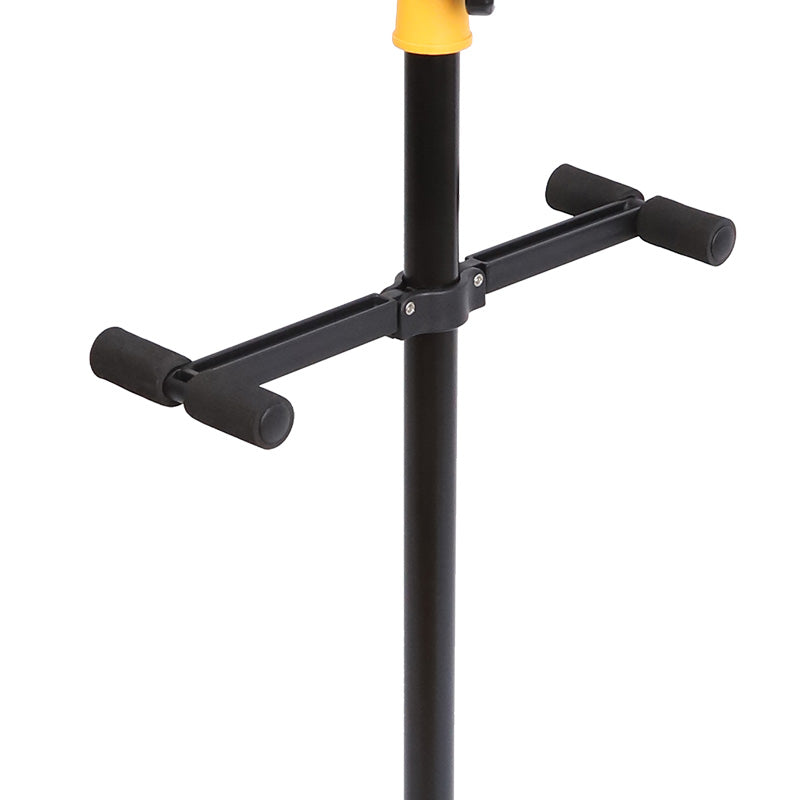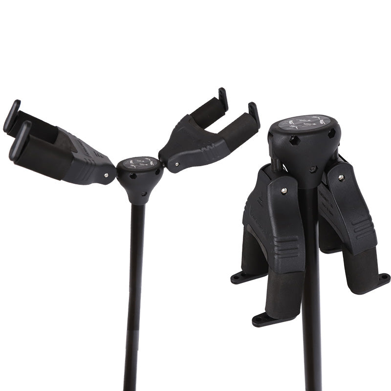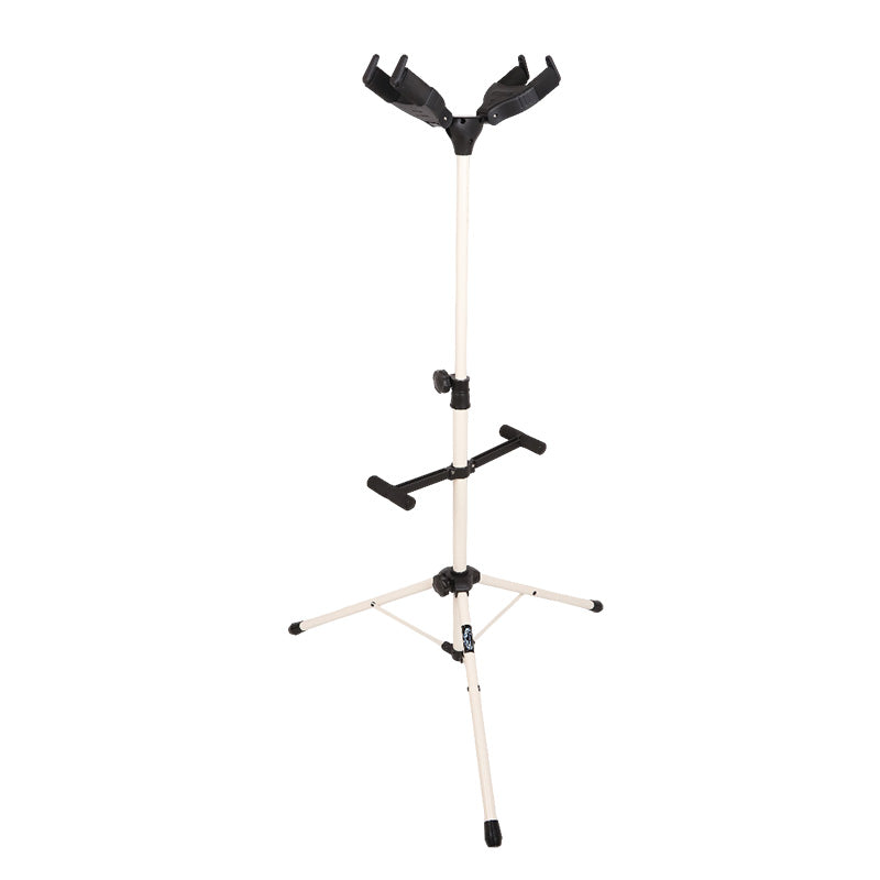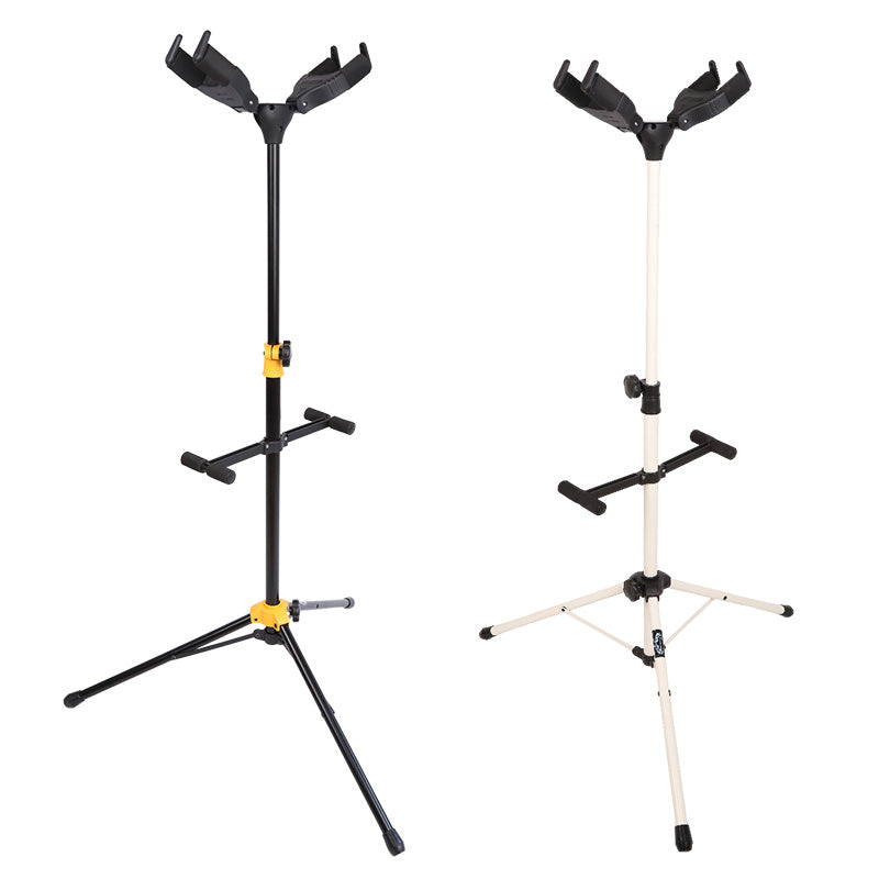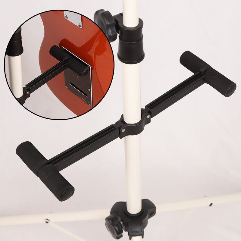 ギターバックサポートバーを改良し、ギターが支柱に直接触れにくくすることで、スタンドのスチールパイプとの接触や衝突を防ぎます。2本同時に吊り下げ可能。