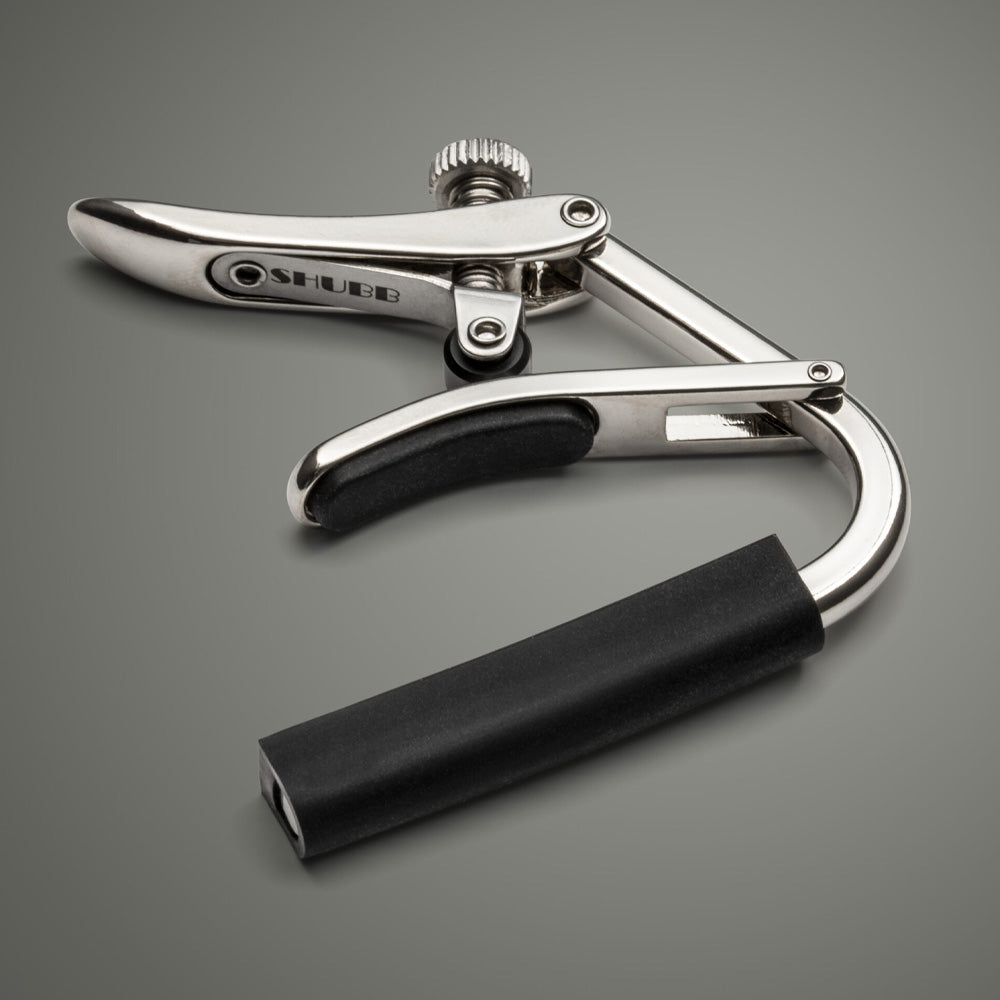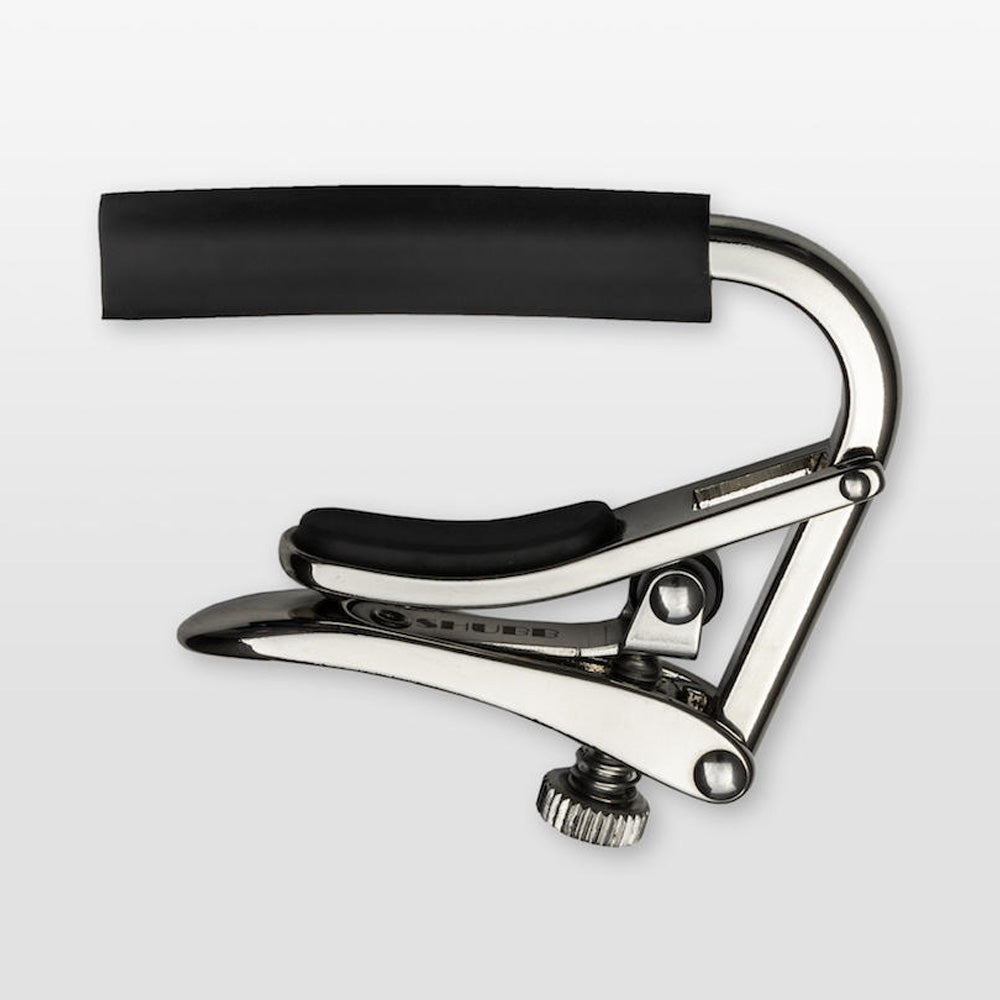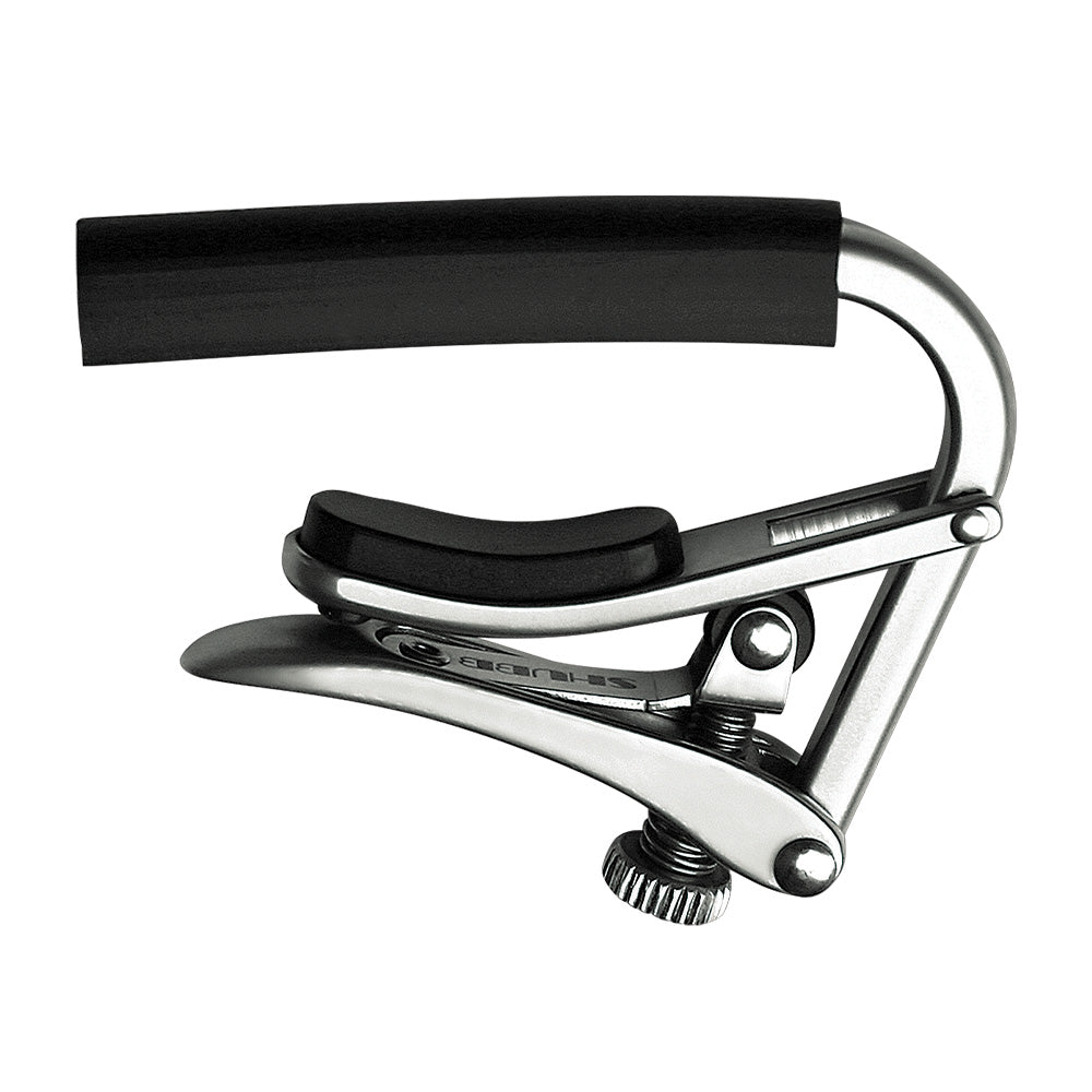 C1nはほとんどのアコギやエレキギターに適用できます。エレガントなブラッシュドニッケル仕上げで、アコギのような光沢ではなく、よりソフトなサテン調の効果があります。滑らかな触り心地で、スタイリッシュでクラシックな外観です。アップグレード版の標準カポタストを一部のディーラーにプレビューした際、このカポタストが最も注目を集めました。長年取引のあるディーラーの言葉を借りれば……「これまでで最もセクシーなShubbカポタストです!」