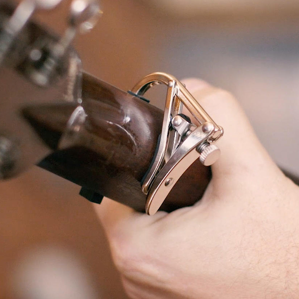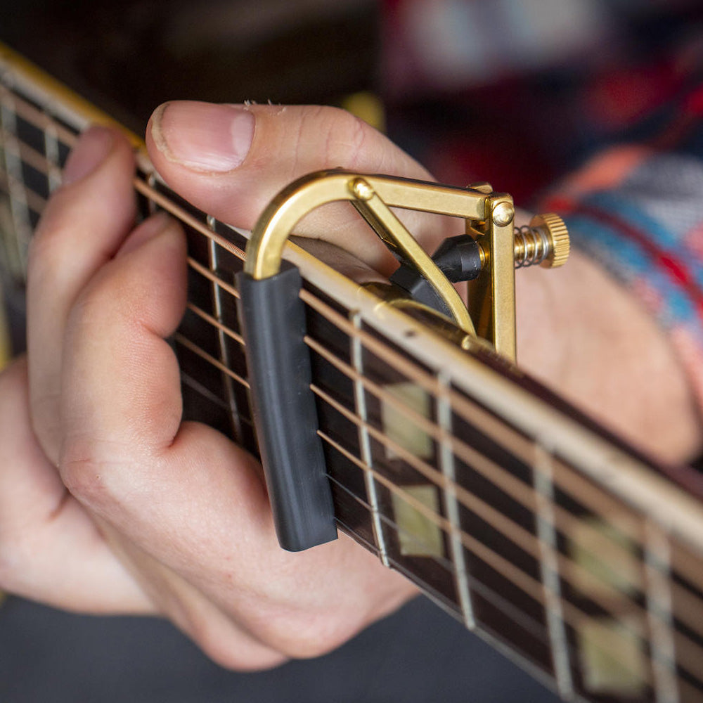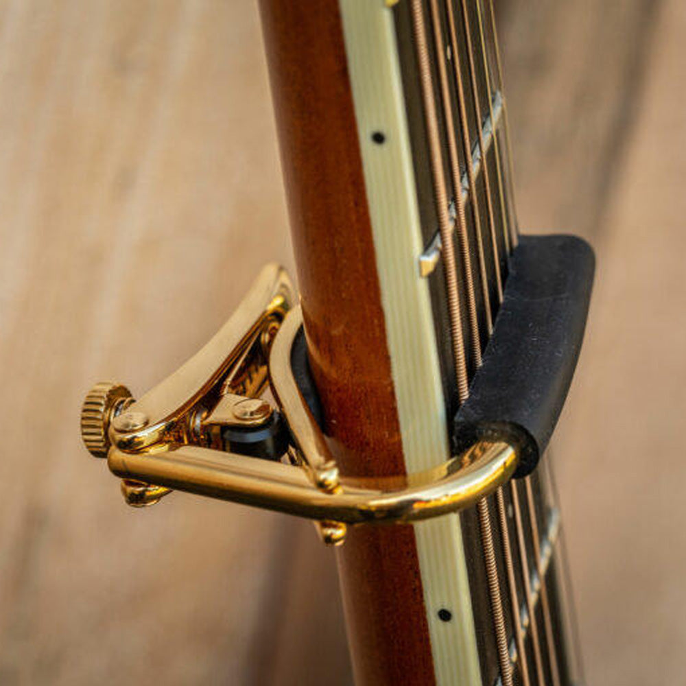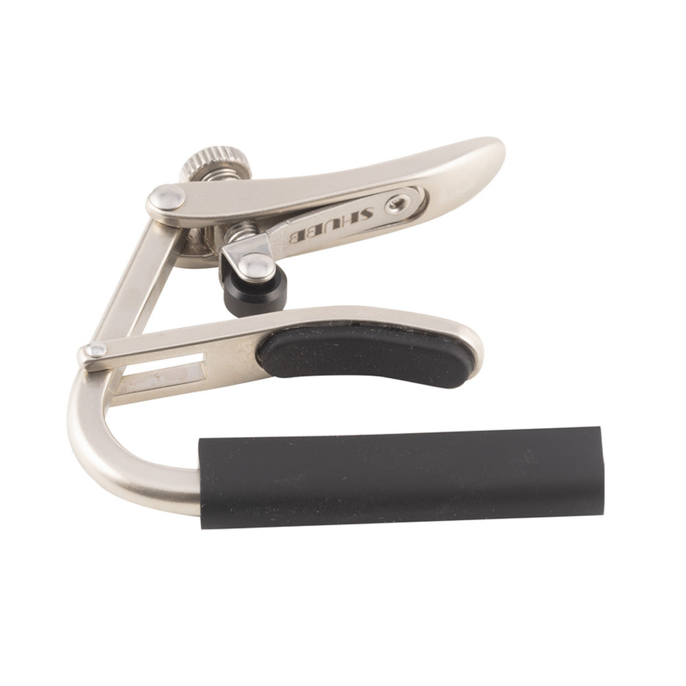 C1nはほとんどのアコギやエレキギターに適用できます。エレガントなブラッシュドニッケル仕上げで、アコギのような光沢ではなく、よりソフトなサテン調の効果があります。滑らかな触り心地で、スタイリッシュでクラシックな外観です。アップグレード版の標準カポタストを一部のディーラーにプレビューした際、このカポタストが最も注目を集めました。長年取引のあるディーラーの言葉を借りれば……「これまでで最もセクシーなShubbカポタストです!」