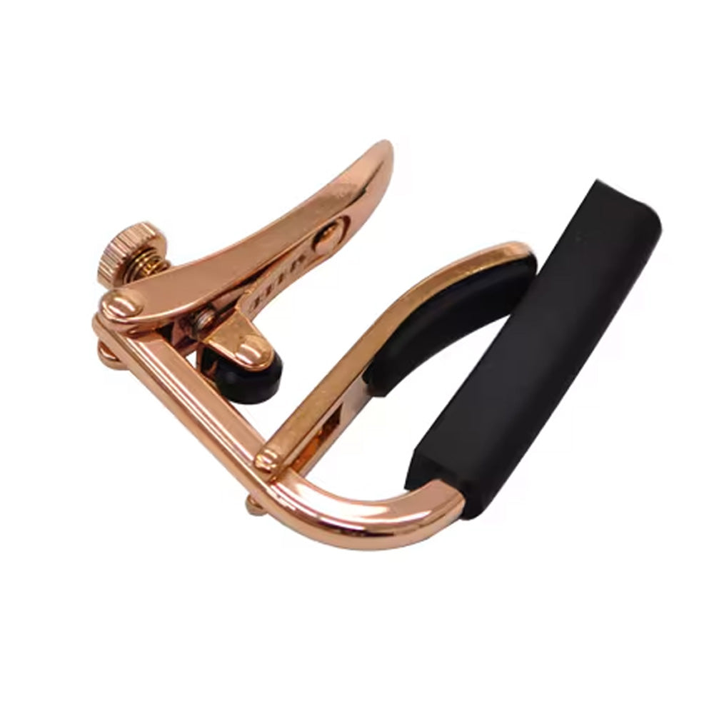 C1g-ROSEは、スチール弦ギター専用に設計されたローズゴールドのカポタストです。Shubb Capo Royaleシリーズに属し、このシリーズは高技術なチタン金属コーティングで知られ、金の外観を持ちながらもより耐久性があります。このカポタストは、ほとんどの標準的なスチール弦アコースティックギターとエレキギター用に設計されています。