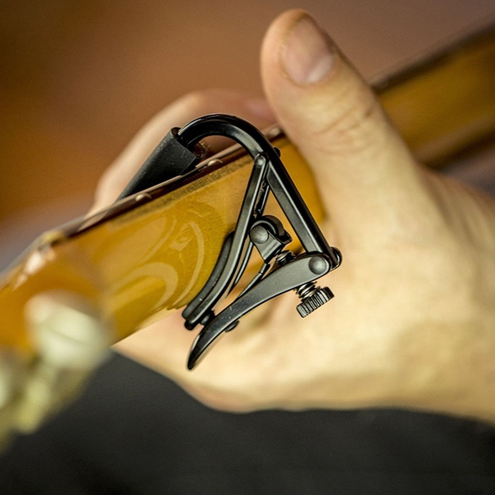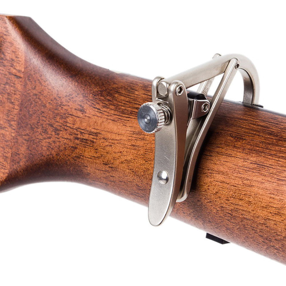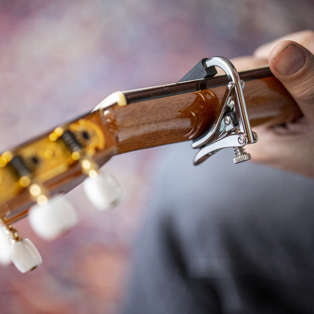 フラットな指板のクラシックギター(ナイロン弦)専用に設計されたカポタスト。真鍮素材を採用し、ローラー設計でスムーズな動作と摩耗の軽減を実現。軽くスライドさせるだけで取り付け・取り外しが可能で、指先を模した設計のため、チューニングの再調整が不要です。