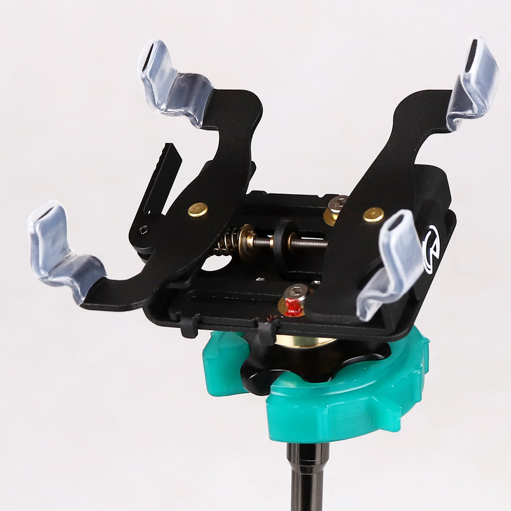 ±13°の角度調整が可能。底座偏移14°と付属の15°/25°角度ブロックを組み合わせることで、さらに多彩な角度設定が可能です。一度快適なポジションを設定すれば、固定リングにより次回使用時も同じ位置を保持します。 -