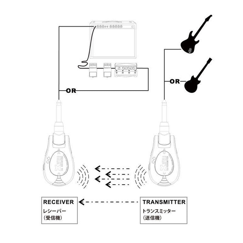 送信機は楽器に直接接続し、受信機はアンプやエフェクトボード、DIボックス、オーディオインターフェースに接続可能。20Hz~20kHzの周波数特性と103dBのダイナミックレンジでトーンを損なわず、クリアなサウンドを実現します。